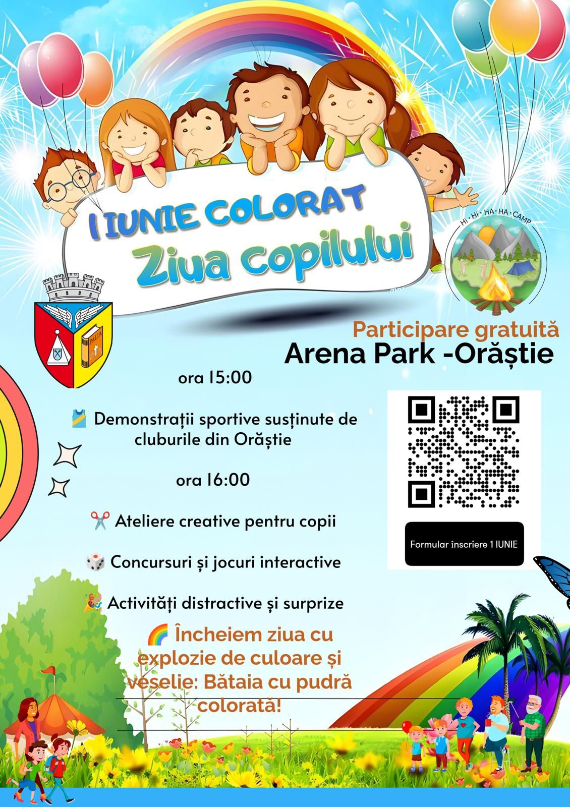 Arena Park, din municipiul Orăștie, devine locul în care distracția se va instala confortabil, pentru câteva ore bune, duminică, de Ziua Internațională a Copilului. Copiii vor putea participa la o sumedenie de ateliere creative, vor avea loc competiții și demonstrații spectaculoase oferite de cluburile sportive din localitate. Ziua se va încheia cu o explozie de culoare: „bătaia” cu pudră colorată!
